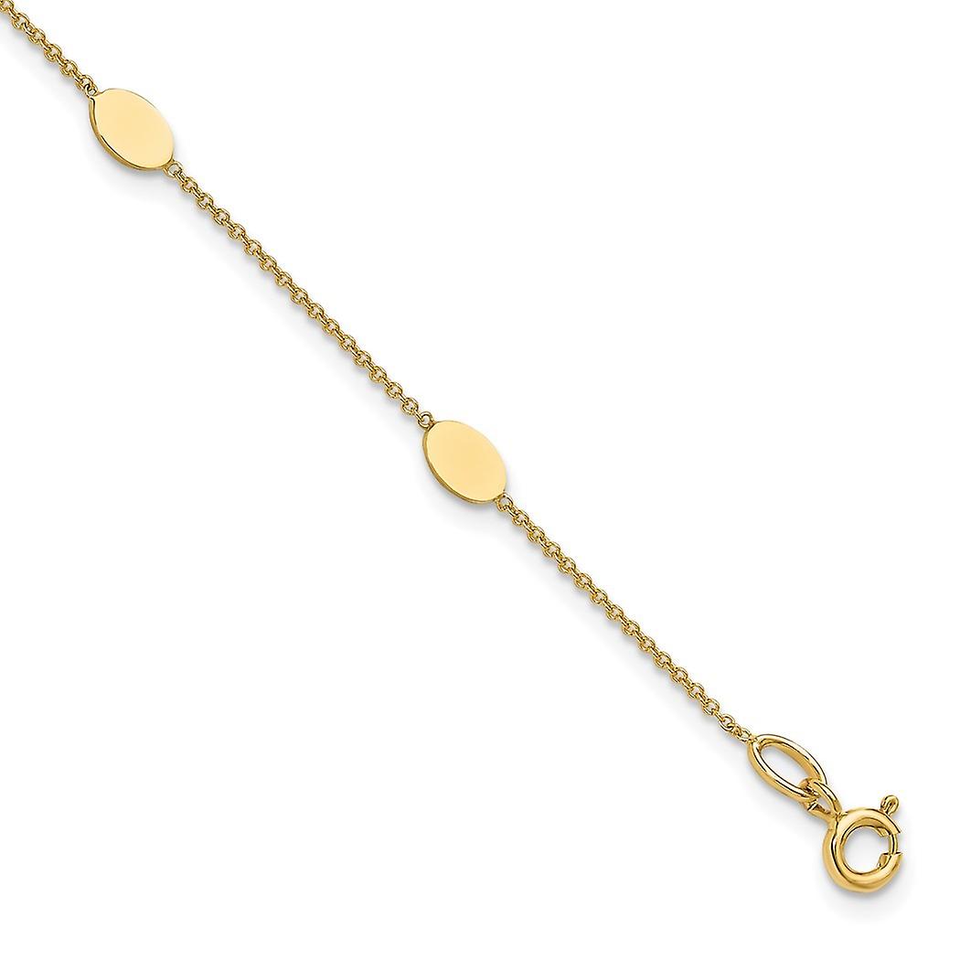 14k Solid Yellow Gold Polished Oval Discs Station Bracelet 1mm Wide 7 Inch Link-Bracelet for Women