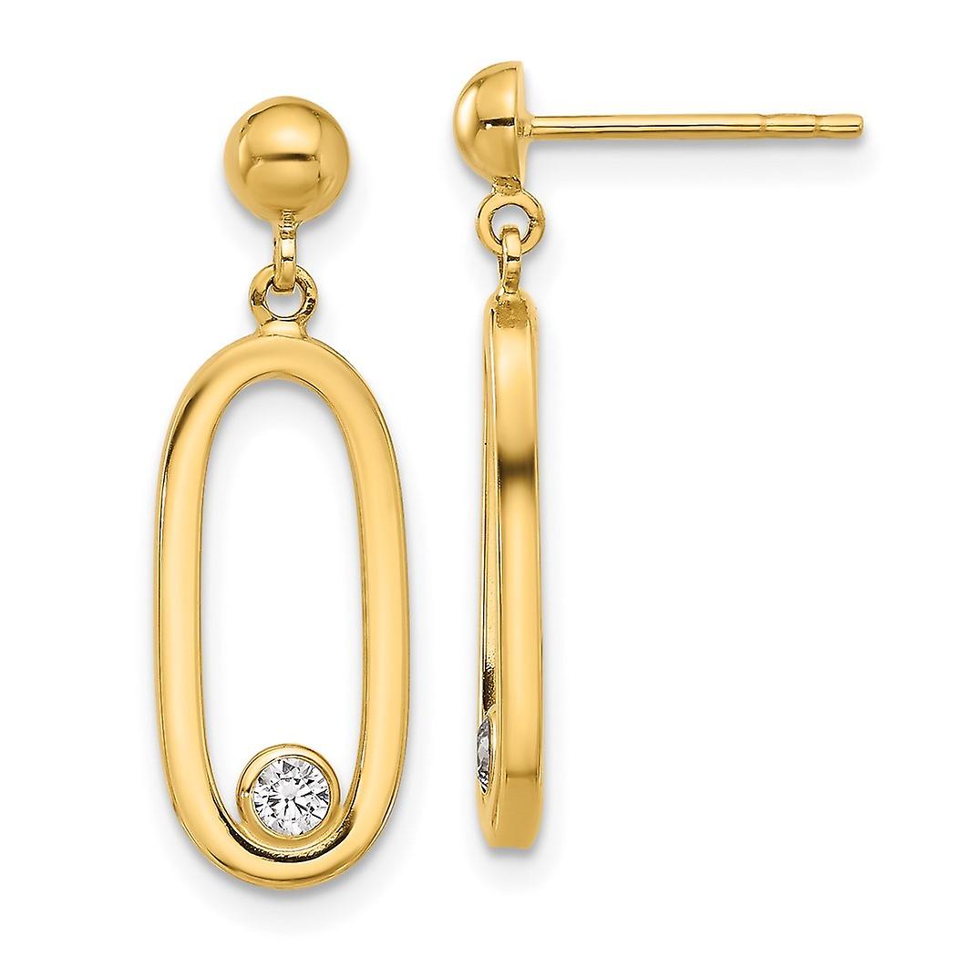 14k Solid Yellow Gold Polished Cubic Zirconia Oval Dangle Post Earrings 24.74x8.05mm Wide-Dangle Earring for Women
