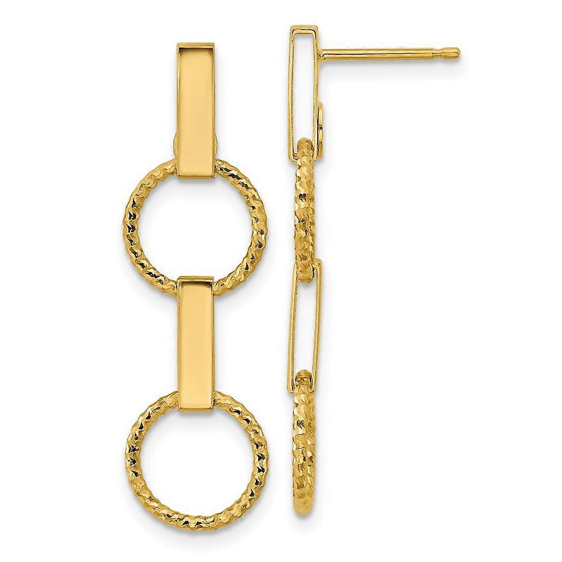 14k Solid Yellow Gold Polished and Sparkle Cut Circle Dangle Post Earrings 32.7x9.8mm Wide-Dangle Earring for Women