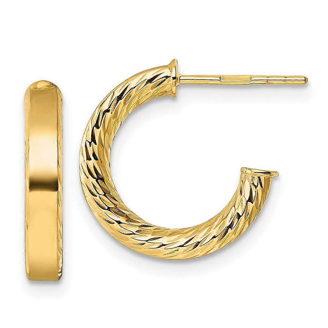 14k Solid Yellow Gold Polished and Sparkle Cut Tube Post Hoop Earrings 15.25x15.25mm Wide 3mm Thick-Hoop Earring for Wom