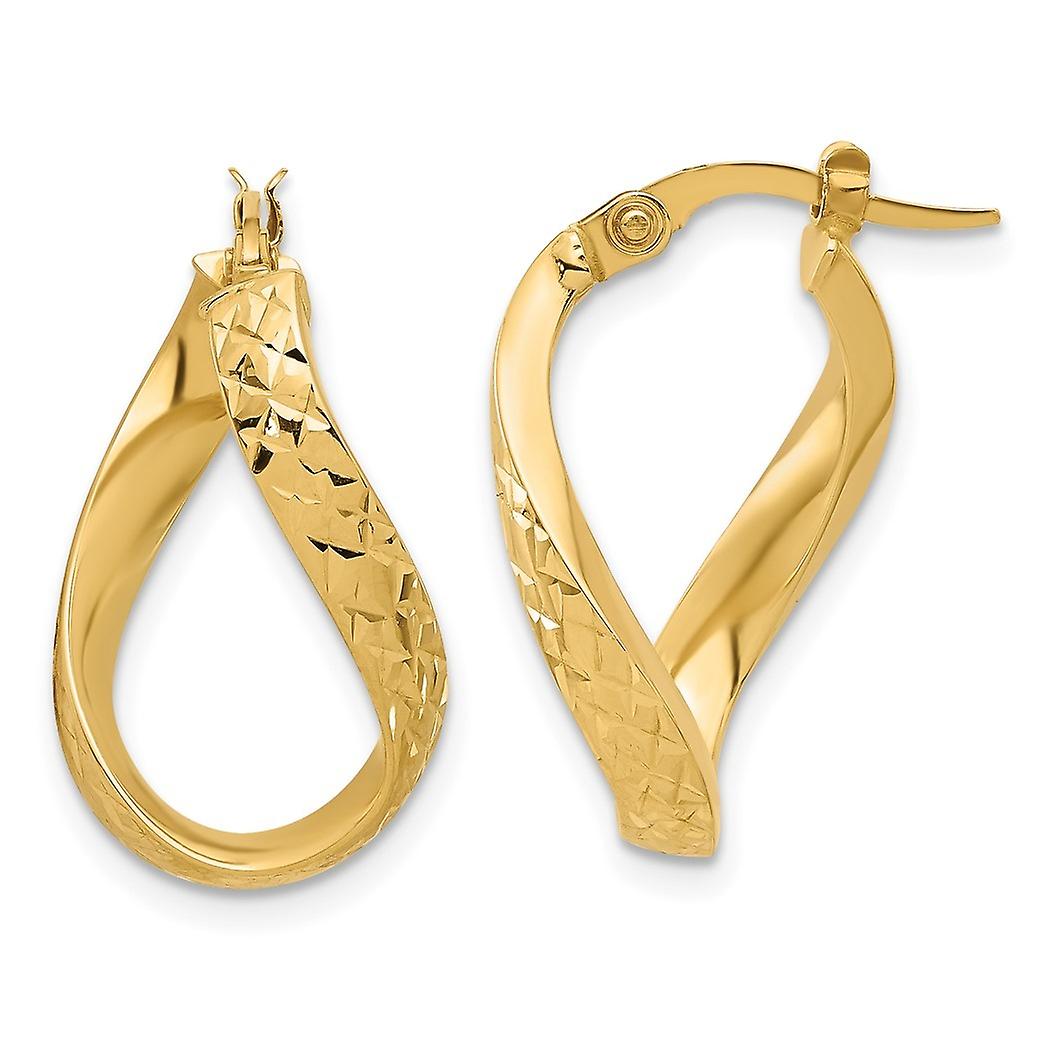 14k Solid Yellow Gold Polished and Sparkle Cut Twist Hoop Earrings 22.88x14.35mm Wide 12.6mm Thick-Hoop Earring for Wome