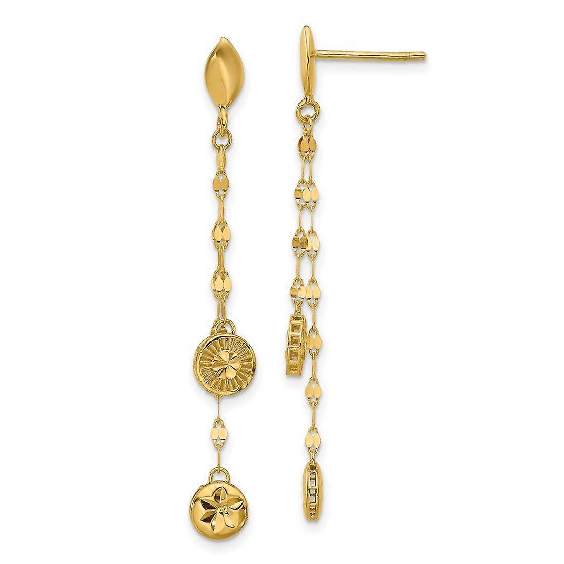 14k Solid Yellow Gold Polished and Sparkle Cut Disc Dangle Post Earrings 50x12.85mm Wide-Dangle Earring for Women