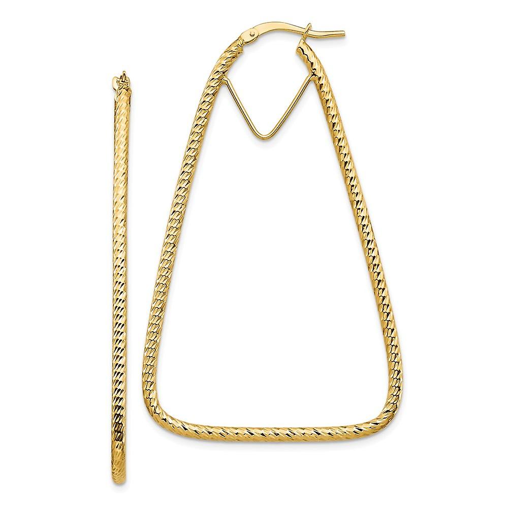 14k Polished and Sparkle-Cut Triangle Hoop Earrings - Measures 56.95x35.08mm Wide 2mm Thick - 2.6 Grams in 14k Yellow Gold - - Thickness: 2 mm - Width of Item: 35.08 mm - Length of Item: 56.95 mm - Earring Closure: Wire & Clutch - Earring Type: Hoop - Finish: Polished -