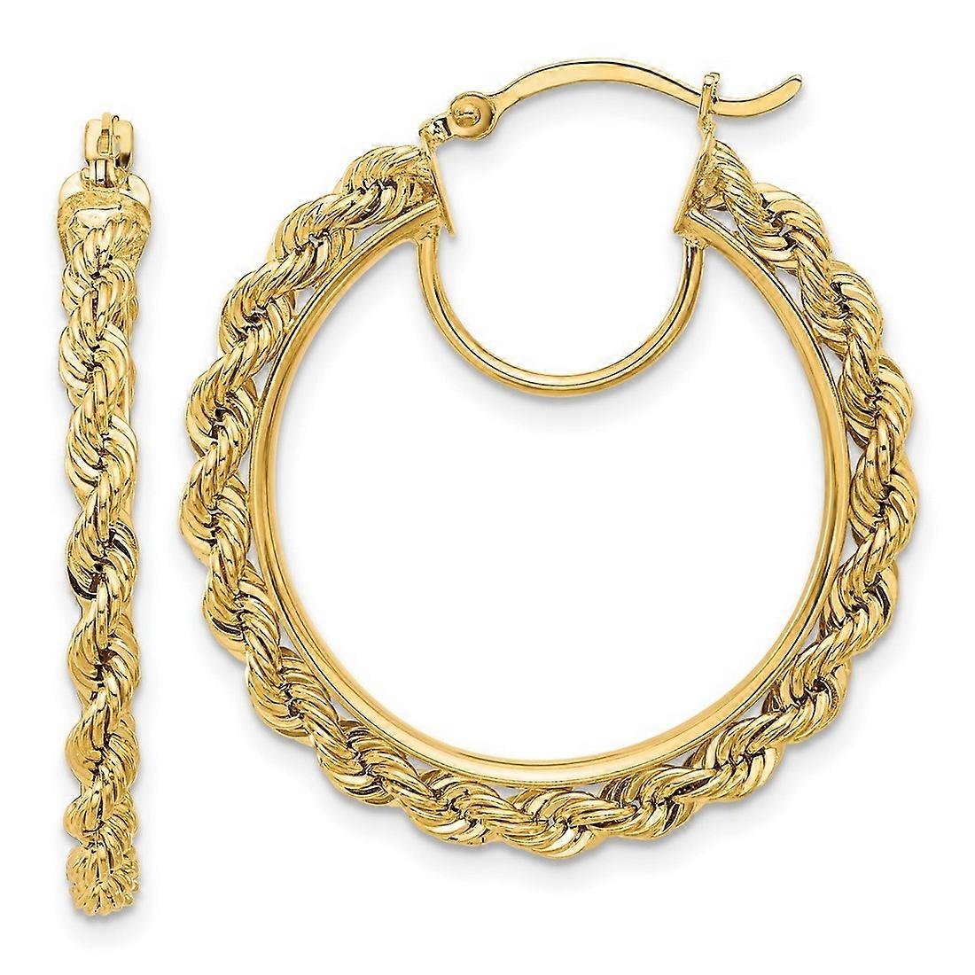 14k Solid Yellow Gold Polished and Sparkle Cut Rope 2.95mm Hoop Earrings 30x30mm Wide 2.95mm Thick-Hoop Earring for Wome
