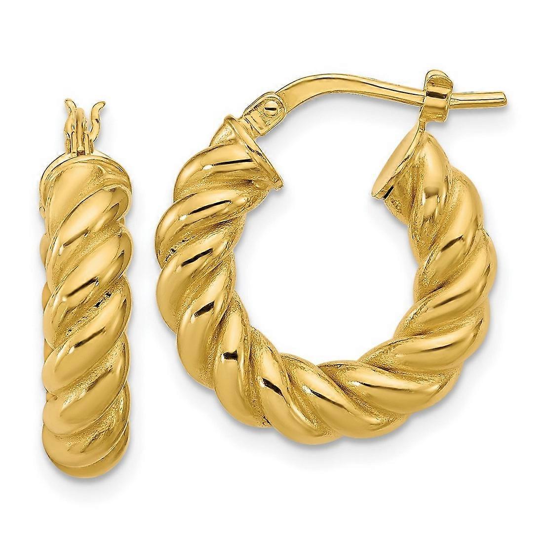 14k Solid Yellow Gold Polished and Twisted Round Hoop Earrings 18.25x19.25mm Wide 5mm Thick-Hoop Earring for Women