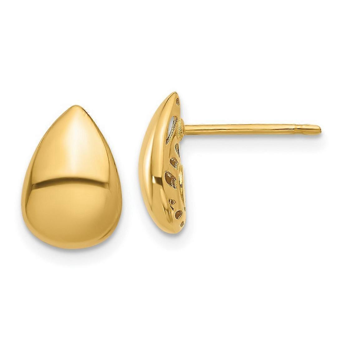 14k Solid Yellow Gold Polished Teardrop Post Earrings 12x8.5mm Wide Stud Earring for Women