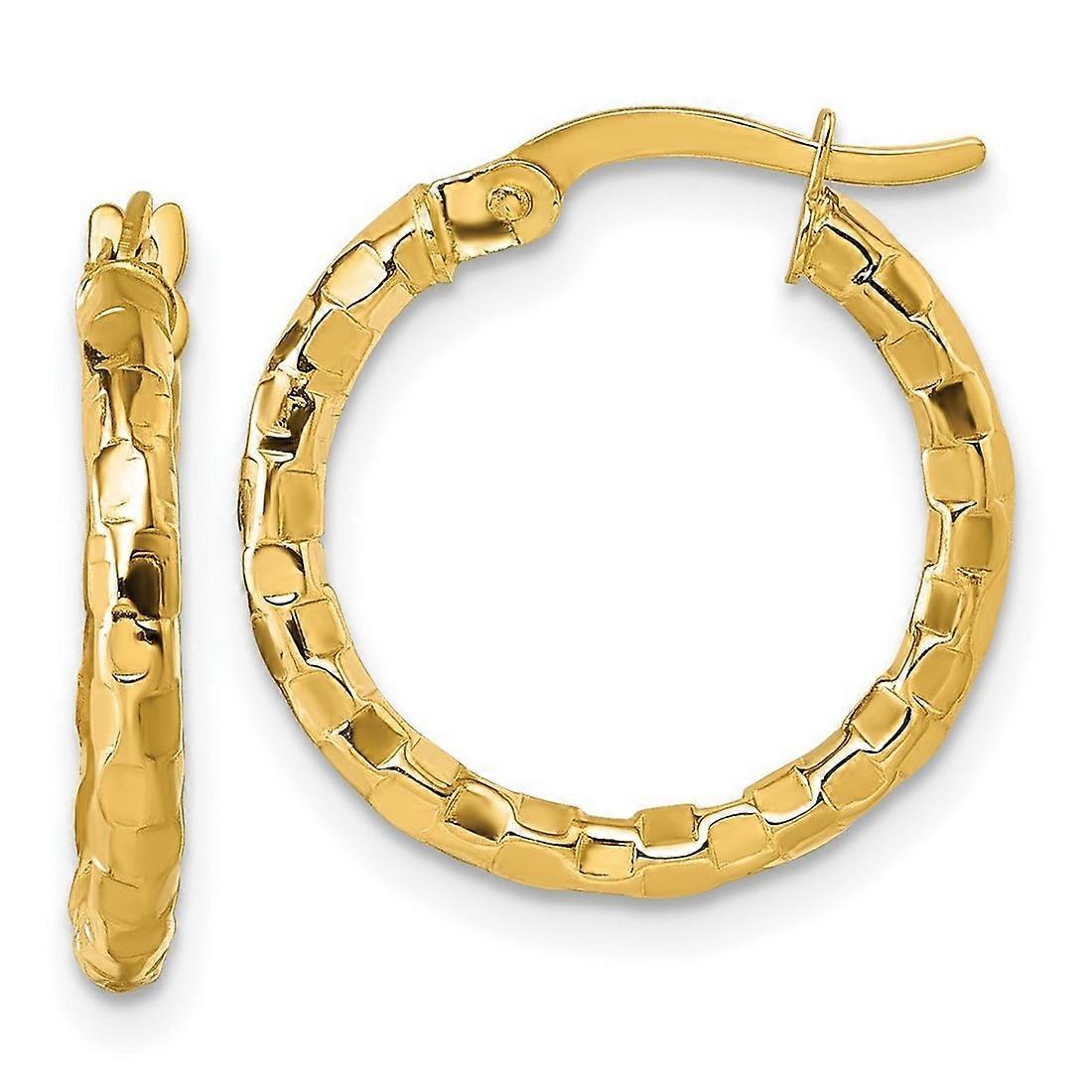 14k Solid Yellow Gold Polished Textured Hoop Earrings 17x19mm Wide 2.3mm Thick-Hoop Earring for Women