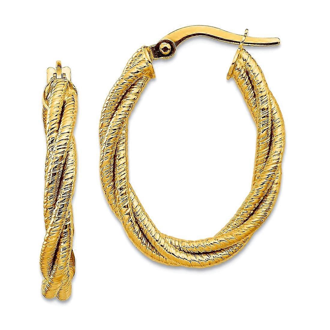 14k Solid Yellow Gold Polished Textured Twisted Oval Hoop Earrings 25.2x20.4mm Wide 3.2mm Thick-Hoop Earring for Women