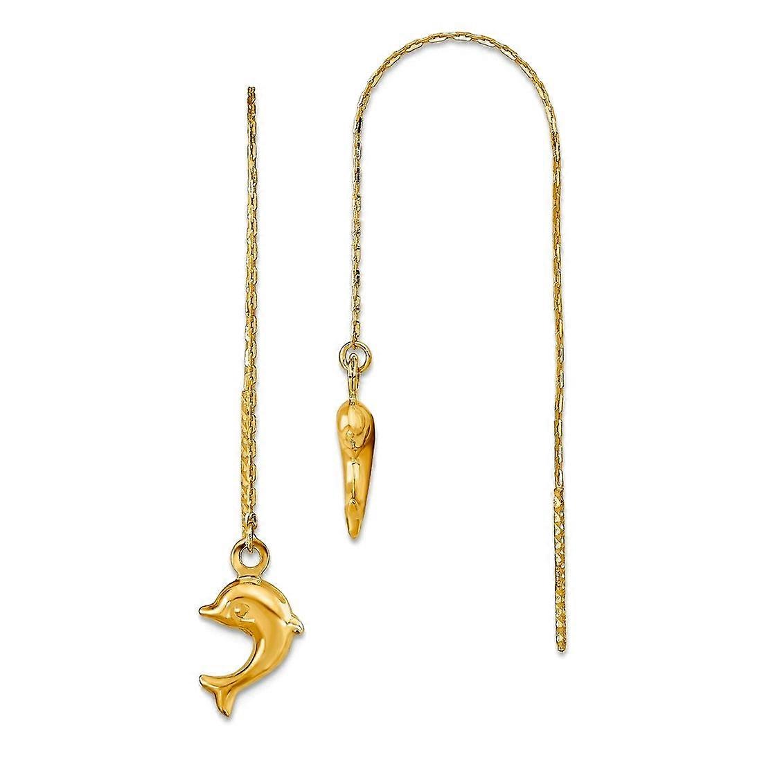 14k Solid Yellow Gold Polished Dolphins Threader Earrings 59x8mm Wide Stud Earring for Women