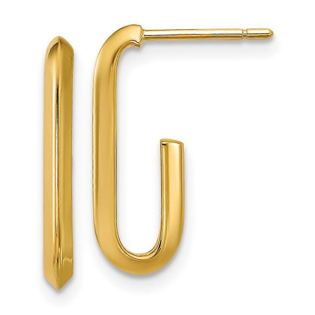 7.2mm 14k Polished Knife Edge Oval Post J-hoop Earrings - Measures 19x7.2mm Wide 2.2mm Thick - 1.5 Grams In 14k Yellow Gold - - Thickness: 2.2 mm - Width of Item: 7.2 mm - Length of Item: 19 mm - Earring Closure: Post & Push Back - Earring Type: Hoop - Finish: Polished - Feature: Lightweight -