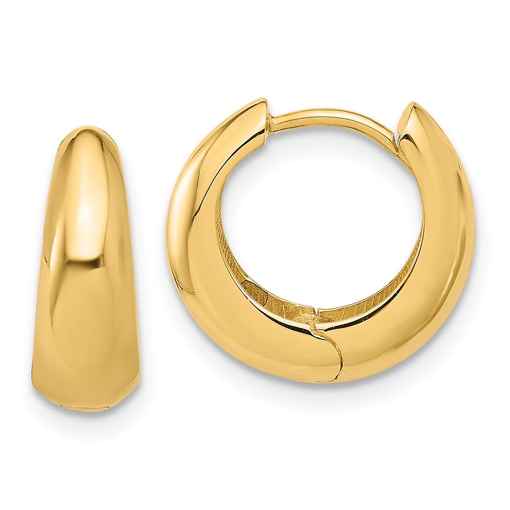 14k Solid Yellow Gold Polished Hinged Hoop Earrings 13.3x14.6mm Wide 5.2mm Thick-Hoop Earring for Women