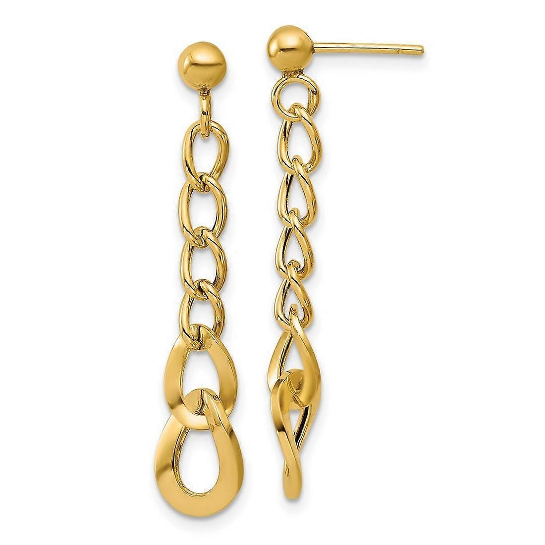 8.1mm 14k Polished Fancy Curb Link Post Dangle Earrings - Measures 38x8.1mm Wide - 1.7 Grams In 14k Yellow Gold - - Width of Item: 8.1 mm - Length of Item: 38 mm - Earring Closure: Post & Push Back - Earring Type: Drop & Dangle - Finish: Polished - Feature: Lightweight -
