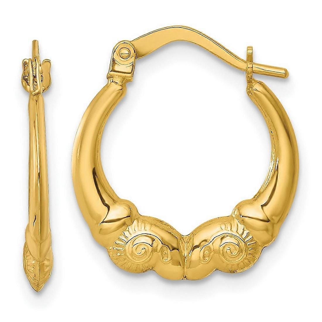 14k Solid Yellow Gold Polished Ram Head Hoop Earrings 16x16mm Wide 1.5mm Thick-Hoop Earring for Women