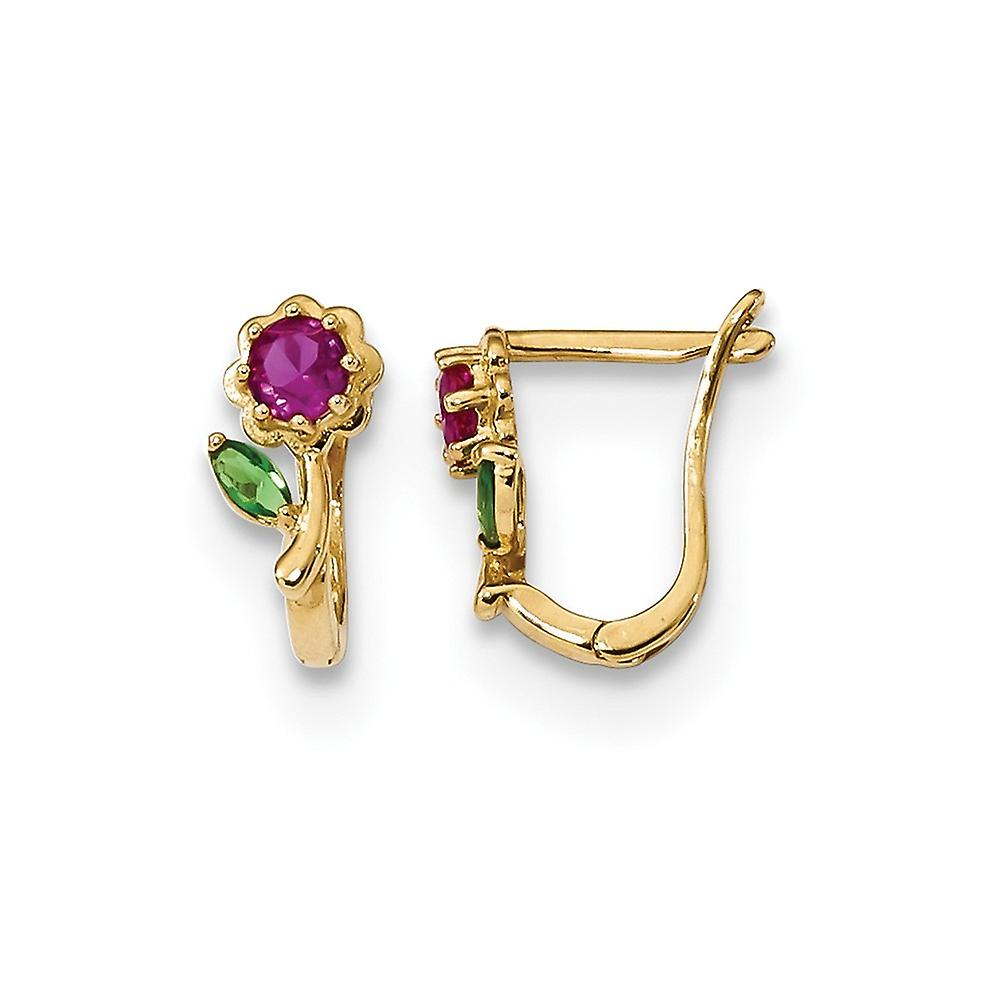 14k Solid Yellow Gold Polished Red and Green Cubic Zirconia Flower Hoop Earringss 9x5.8mm Wide-Hoop Earring for Women