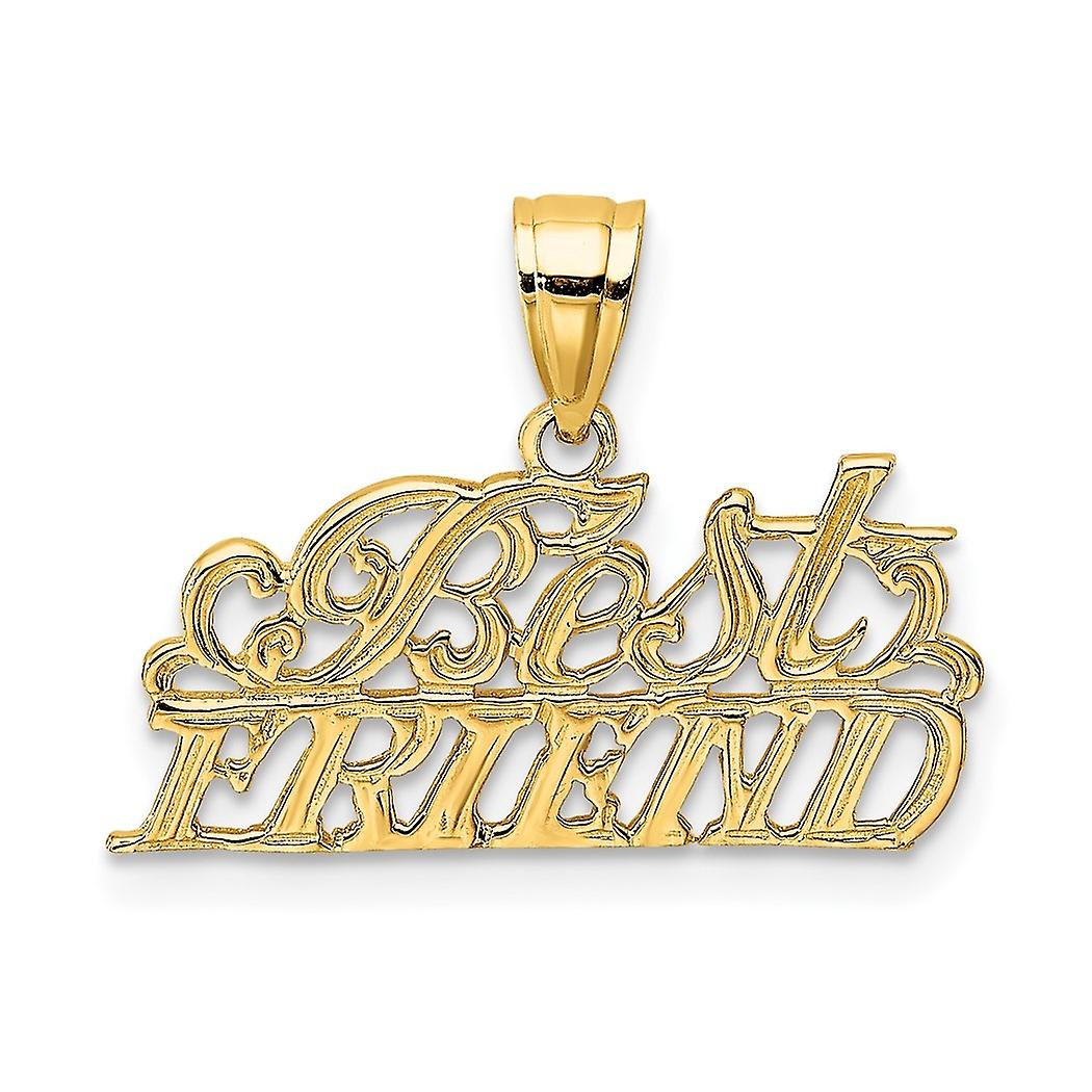 14k Solid Yellow Gold Polished Best Friend Pendant Necklace 13.2x20mm Wide-Pendant for Women