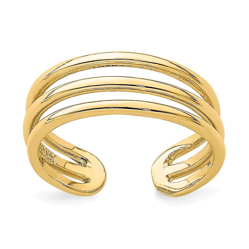14k Solid Yellow Gold Polished 3 Row toe ring-toe ring for Women - 1.5 Grams