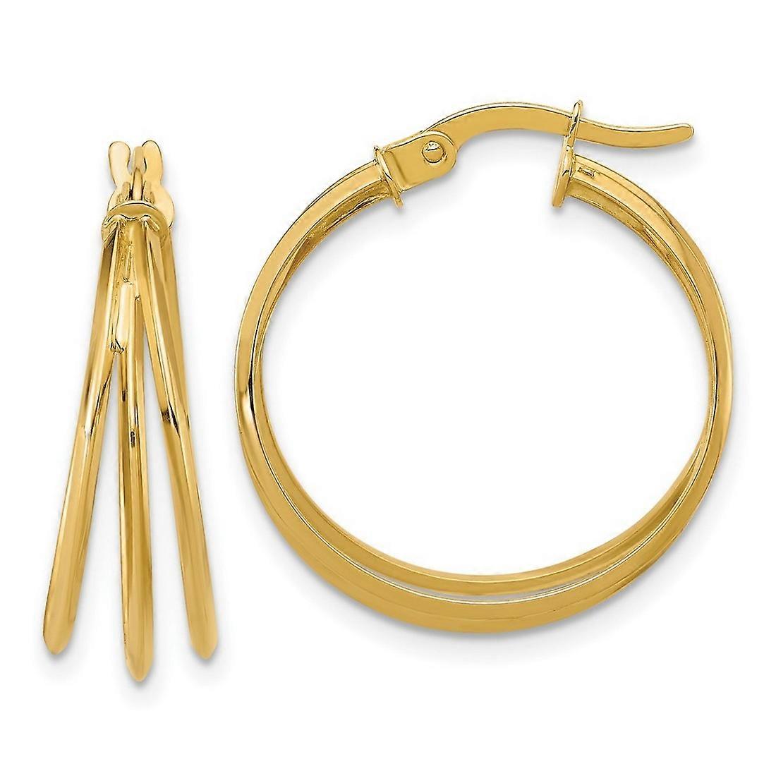 14k Solid Yellow Gold Polished 3 row Round Hoop Earrings 22.75x22.2mm Wide 5.25mm Thick-Hoop Earring for Women