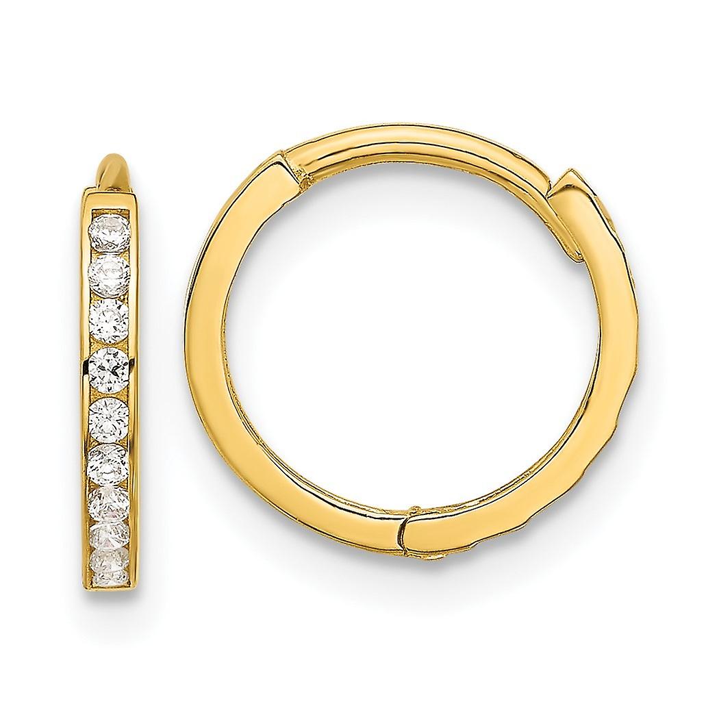 14k Solid Yellow Gold Polished CZ and Sparkle Cut 1.5mm Hoop Earrings 11.8x12mm Wide 1.5mm Thick-Hoop Earring for Women