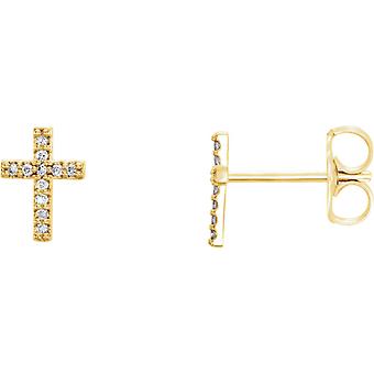 14k Solid Yellow Gold .06 Dwt Polished .05-Dwt Diamond Religious Faith Cross Earrings Stud Earring for Women