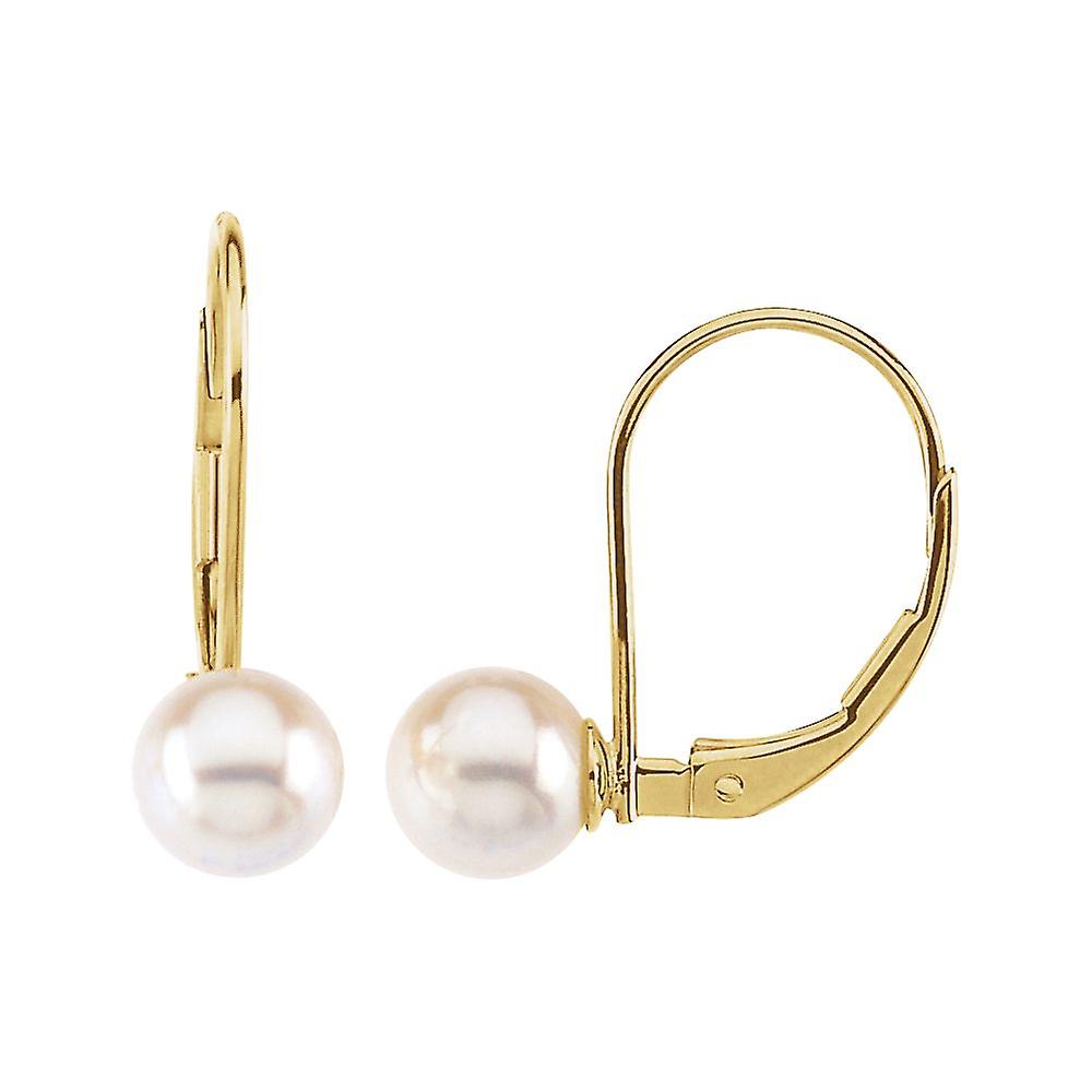 14k Solid Yellow Gold 06mm Cultured Pearl Lever Back Earrings R Stud Earring for Women