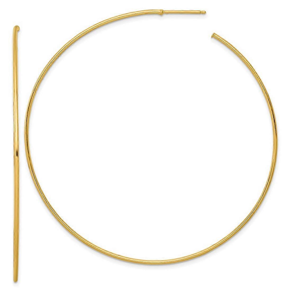 14k Solid Yellow Gold 1.2 X 70mm Polished Post Hoop Earrings 70x70mm Wide 1.2mm Thick-Hoop Earring for Women