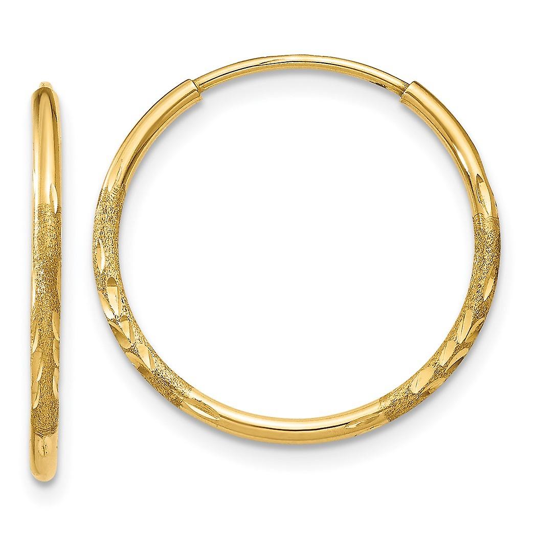 14k Solid Yellow Gold 1.25mm Sparkle Cut Endless Hoop Earrings 17x17mm Wide 1.25mm Thick-Hoop Earring for Women