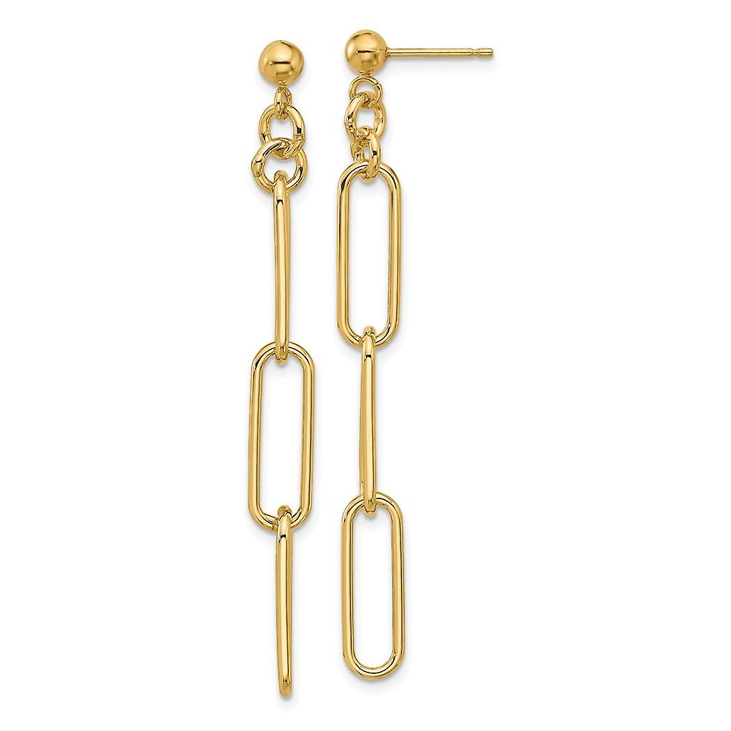 14k Solid Yellow Gold 3 Paperclip Link Dangle Post Earrings 60x6mm Wide Clip on Earring for Women