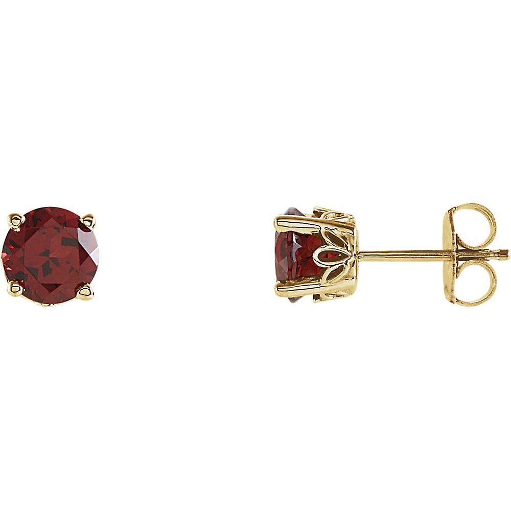 14k Solid Yellow Gold 6mm Gen Mz Gar-Gen Mozambique Garnet Earrings Stud Earring for Women