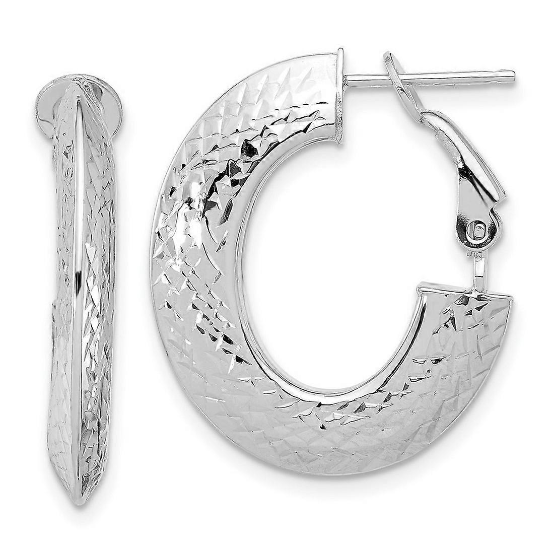 14k Solid Gold With White Rhod Polished and Sparkle Cut Omega Back Hoop Earrings 25.75x22mm Wide 3.5mm Thick-Hoop Earrin