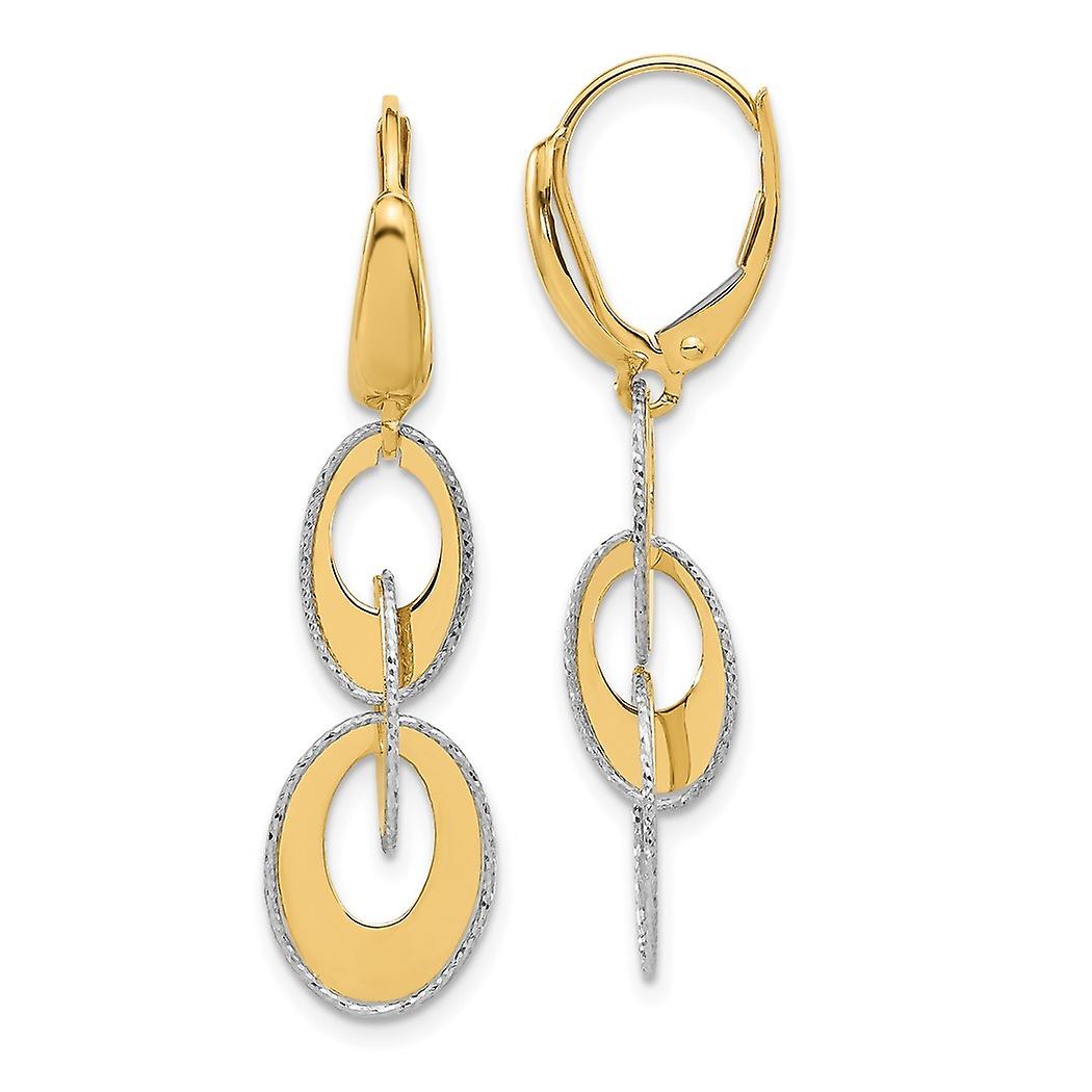 14k Solid Gold Two tone Polished and Diamond-Cut Ovals Dangle Leverback Earrings 38.15x10.31mm Wide-Dangle Earring for W