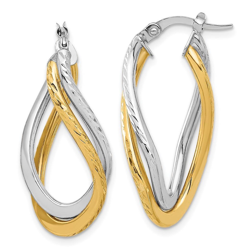 14k Solid Gold Two tone Polished and Diamond-Cut Twist Hoop Earrings 28.95x14.84mm Wide 8mm Thick-Hoop Earring for Women