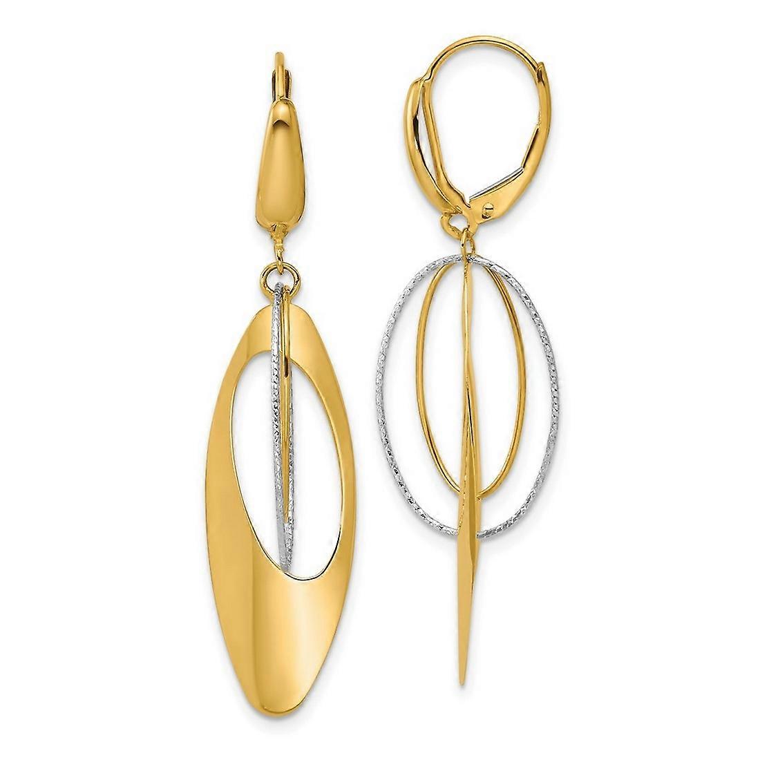 14k Solid Gold Two tone Polished Sparkle Cut Dangle Leverback Earrings 46.75x11.75mm Wide-Dangle Earring for Women