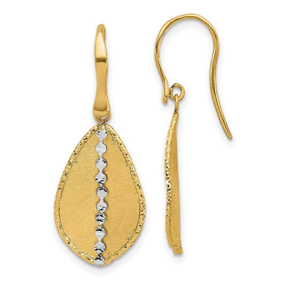 14k Solid Gold Two tone Polished and Satin Teardrop Dangle Earrings 33.8x13mm Wide-Dangle Earring for Women