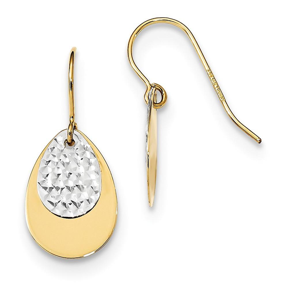 14k Solid Gold Two tone Polished Textured Teardrop Dangle Earrings 20mm long-Dangle Earring for Women
