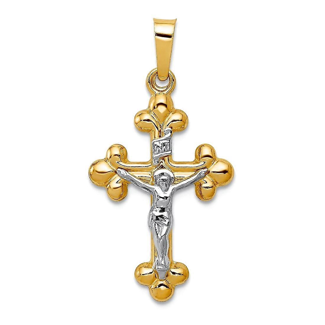 14k Solid Gold Two tone Polished Budded Inri Crucifix Pendant Necklace 27x14mm Wide-Pendant for Women