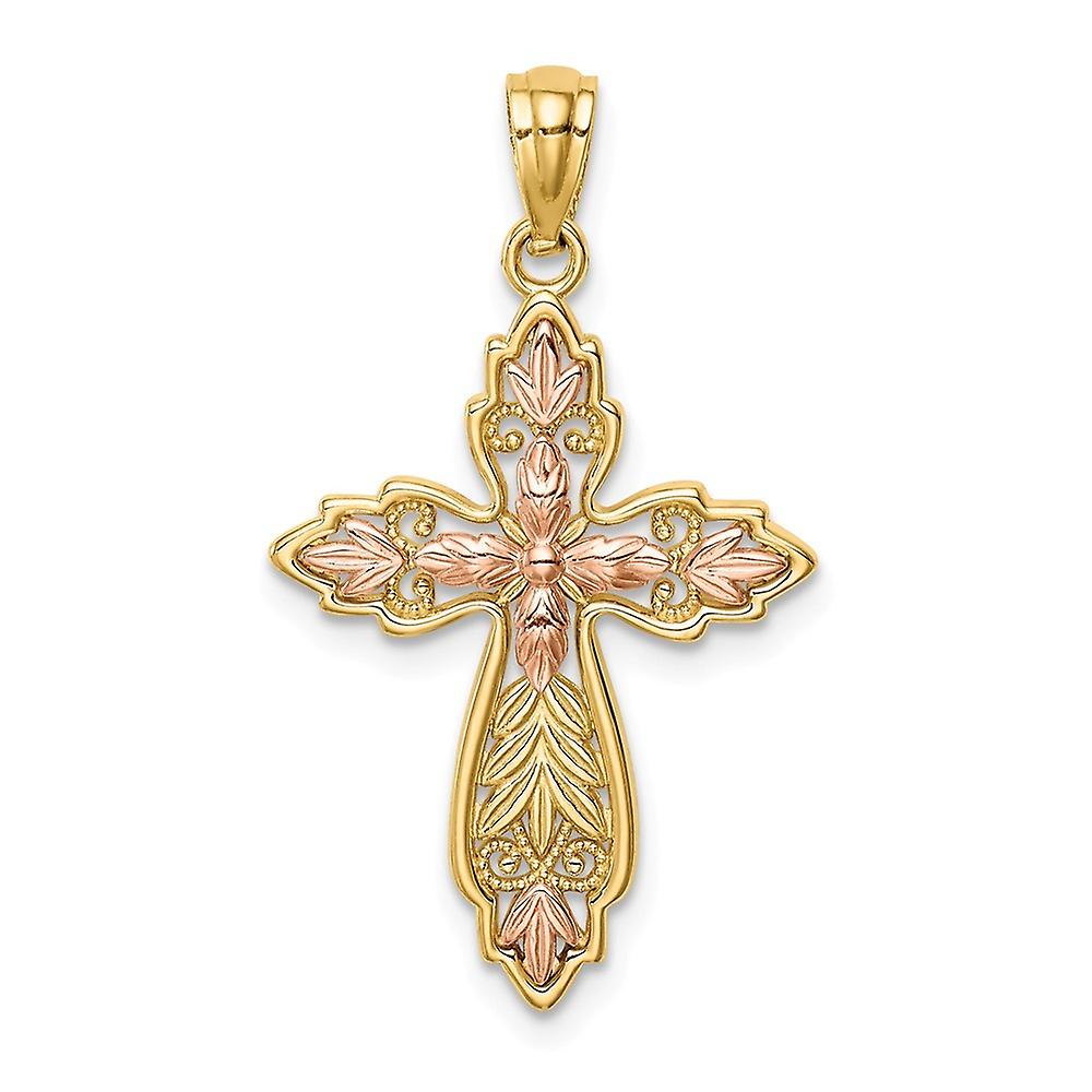 14k Two-tone Cross Pendant - Measures 28mm long - 1.3 Grams in 14k Yellow Gold and White Gold - - Length of Item: 28 mm - Finish: Polished - Feature: Solid - - This Item Does Not Ship With a Chain