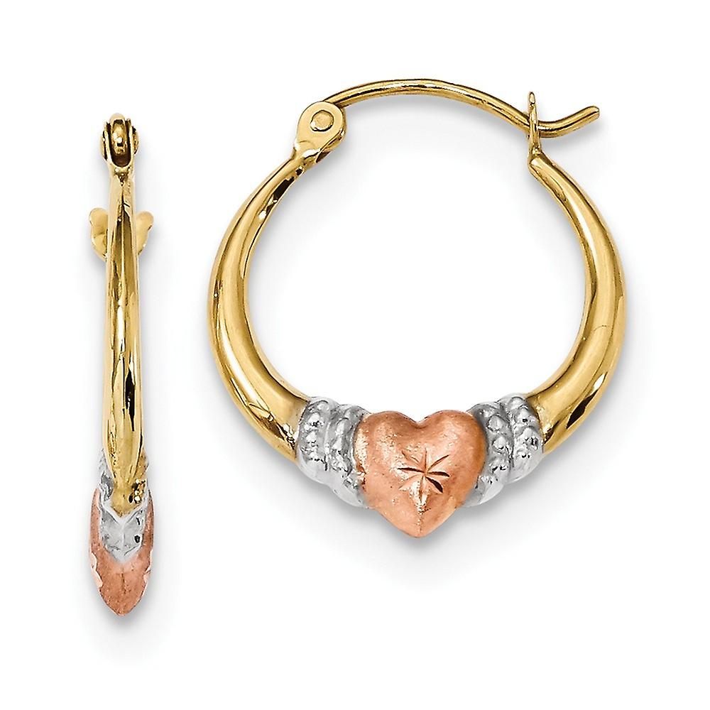 14k Solid Gold Tri color Polished Satin and Sparkle Cut Hoop Earrings 19.89x16.91mm Wide 2.52mm Thic-Hoop Earring for Wo