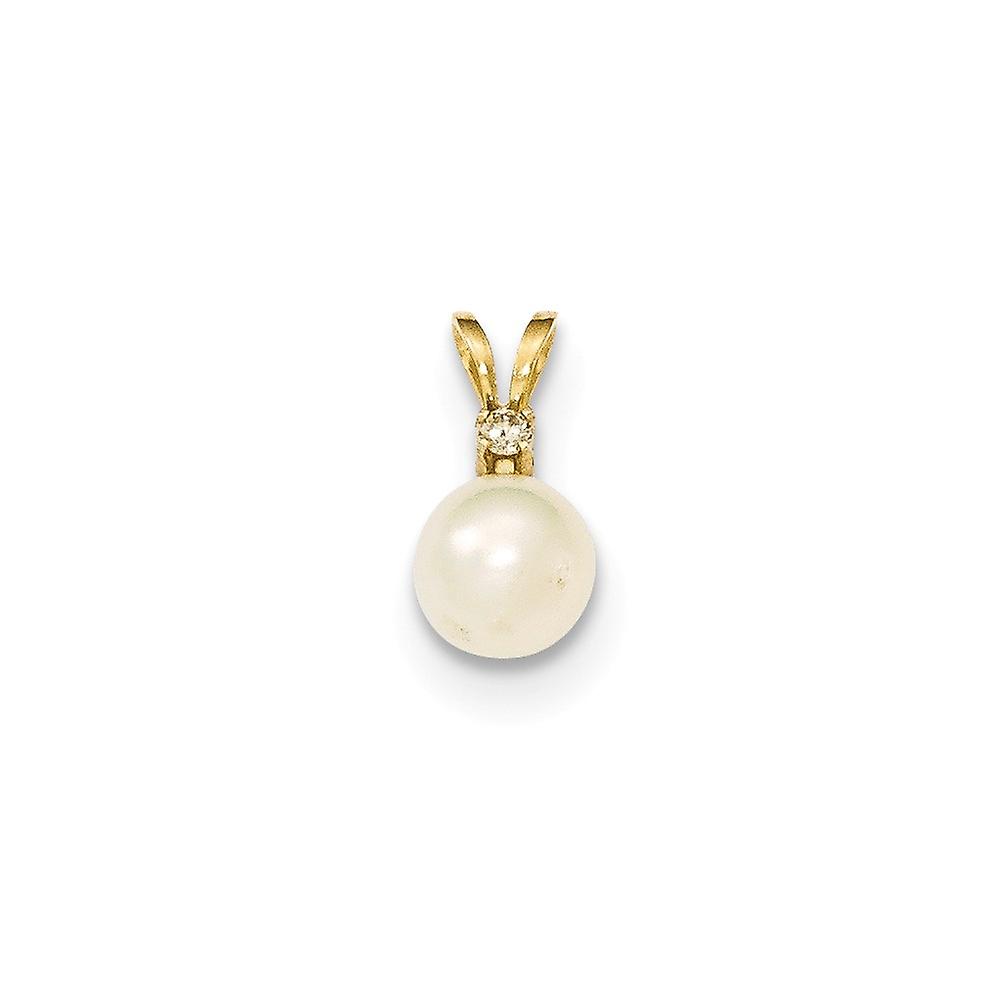 14k Solid Gold Round White Freshwater Cultured Pearl Diamond Pendant Necklace-Pendant for Women