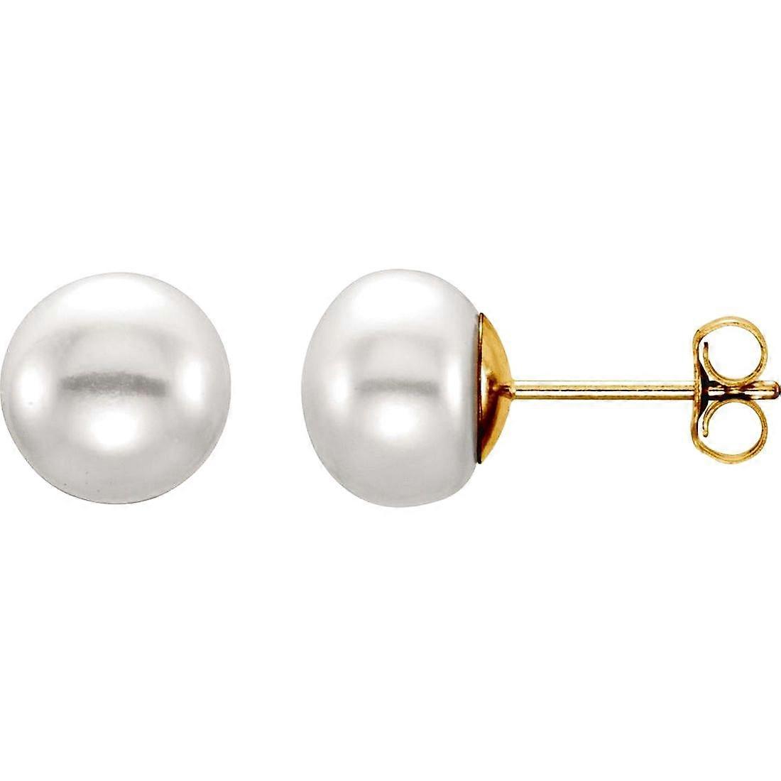 14k Solid Gold Cultured White Freshwater Pearl Polished-Freshwater-Cultured-Pearl Earrings Stud Earring for Women