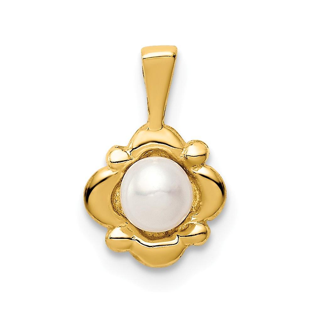 14k Solid Gold 4 5mm White Button Freshwater Cultured Pearl Pendant Necklace-Pendant for Women
