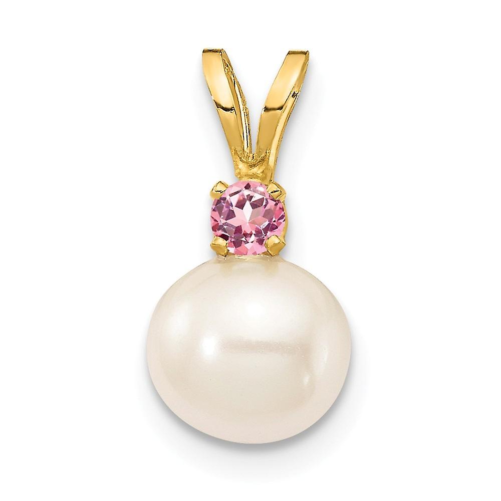 14k Solid Gold 6 7mm White Round Freshwater Cultured Pearl Pink Topaz Pendant Necklaces-Pendant for Women