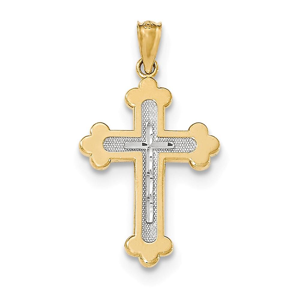 14k Solid Textured Y W Gold Polished Budded Religious Faith Cross Pendant Necklace 28mm long-Pendant for Women