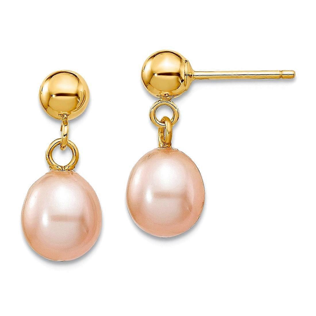 14k Solid Pink Gold Freshwater Cultured Pearl Long Drop Dangle Earrings-Dangle Earring for Women