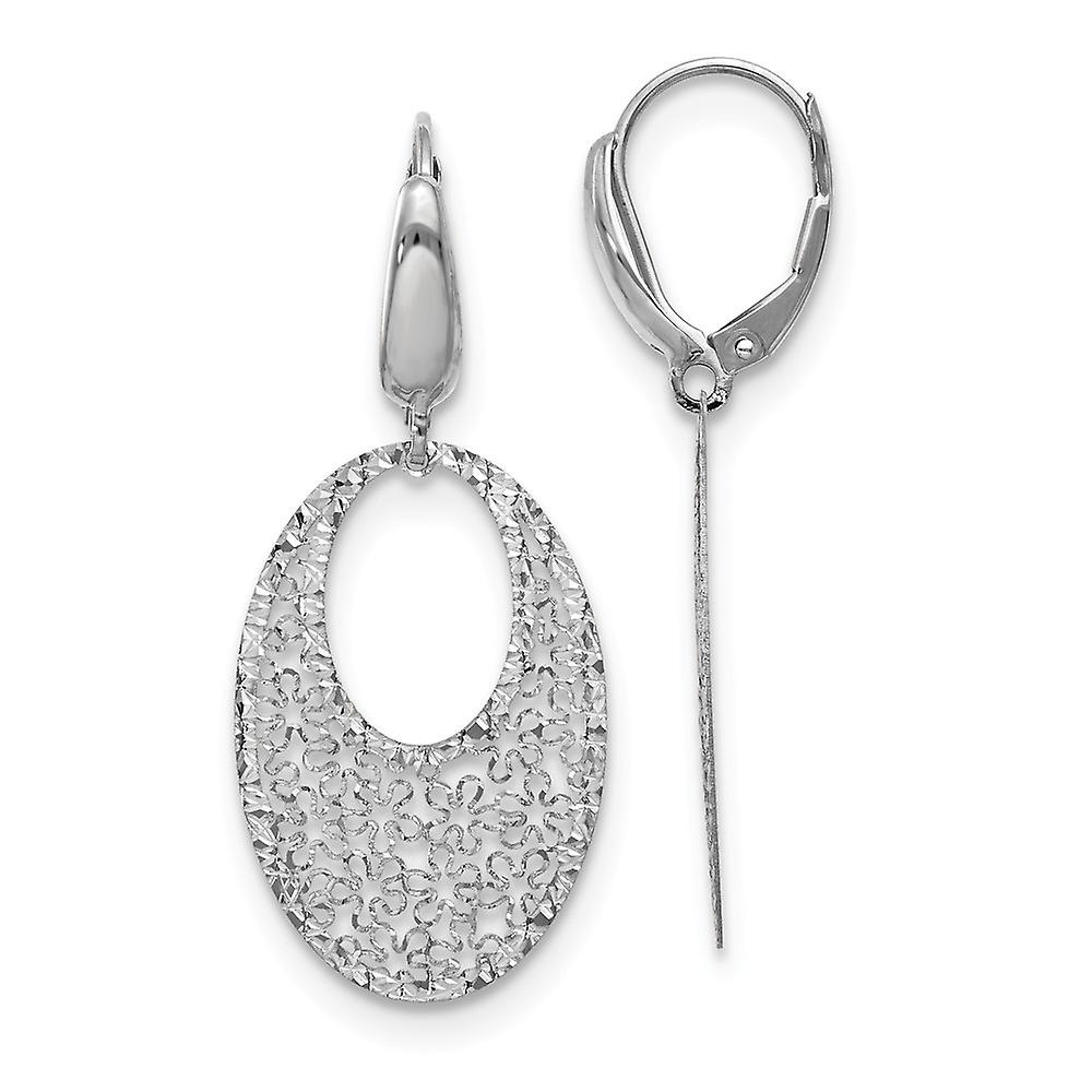 14k Solid White Gold Polished and Textured Floral Dangle Leverback Earrings 40x17mm Wide-Dangle Earring for Women