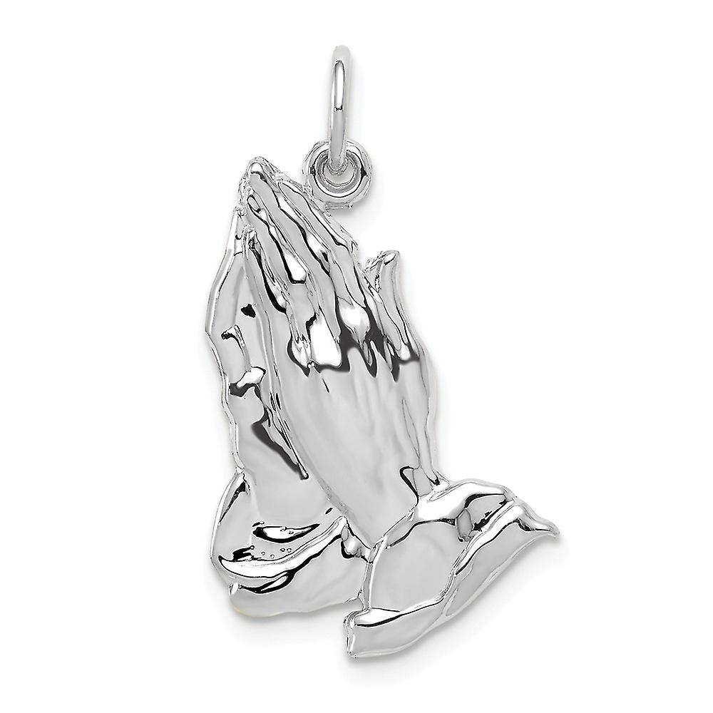 14k Solid White Gold Praying Hands Pendant Necklace 26mm long-Pendant for Women - 1.3 Grams