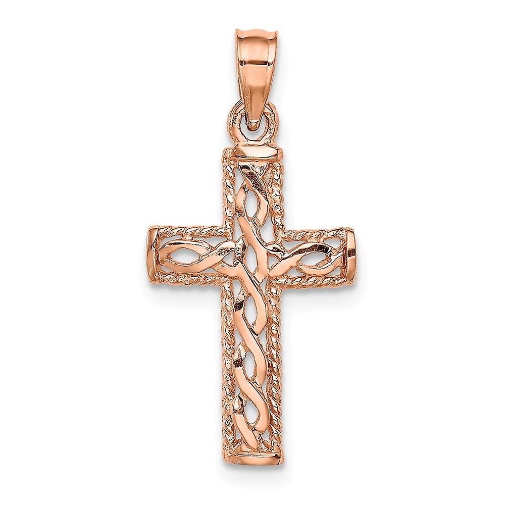 14k Solid Rose Gold Polished Braided Religious Faith Cross Pendant Necklace-Pendant for Women