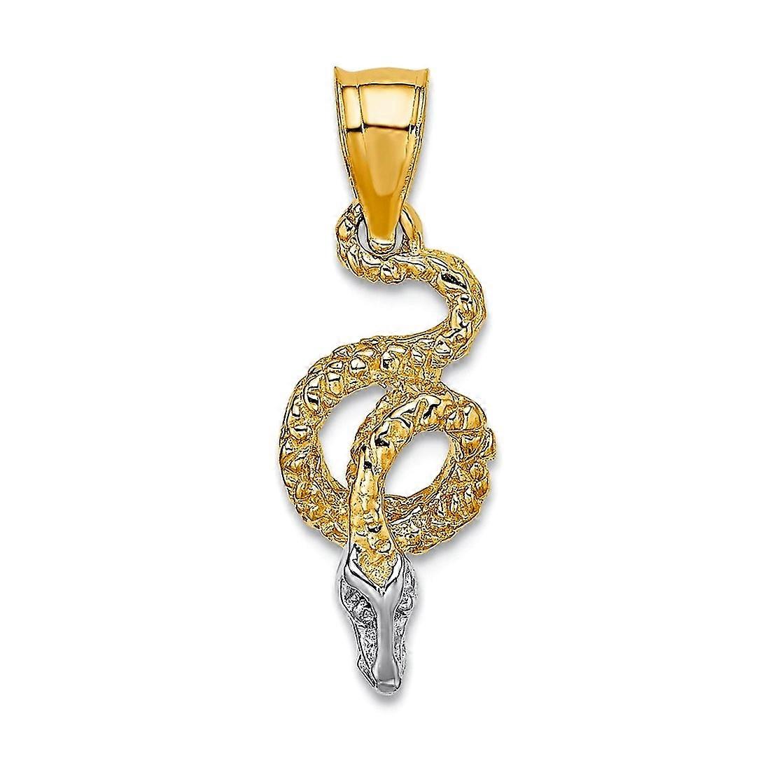 14k Two tone Gold Coiled Snake With White Head Charm 20.58x7.23mm Wide Pendant Necklace for Women