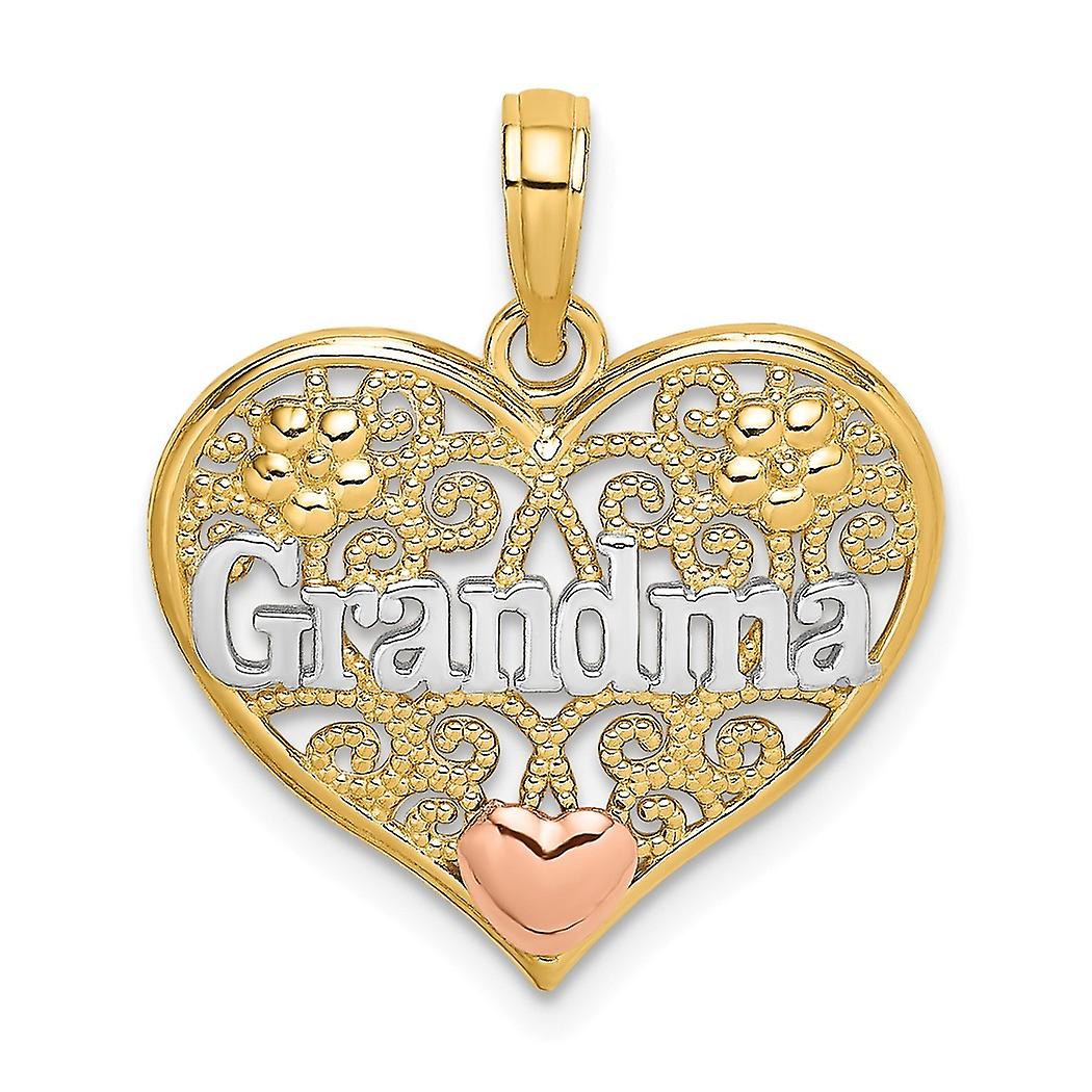 14k Two tone Gold Wht Grandma In Filigree Love Heart Pendant Necklace With Pink-Heart Accent Tri color 23.5x19.3mm Wide-