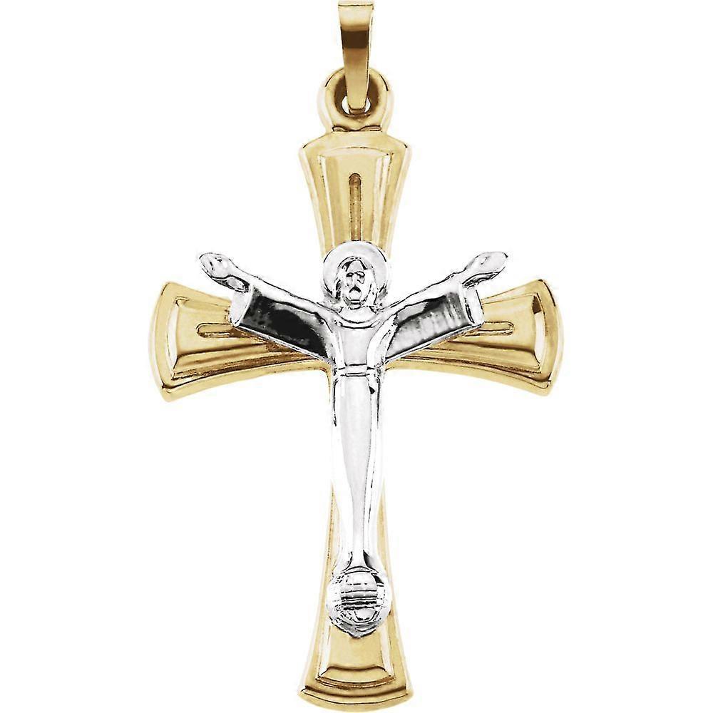 14k Two Tone Gold Christ Is Risen Crucifix Pendant Necklace 31.75x23mm-Pendant for Women - 1.9 Grams