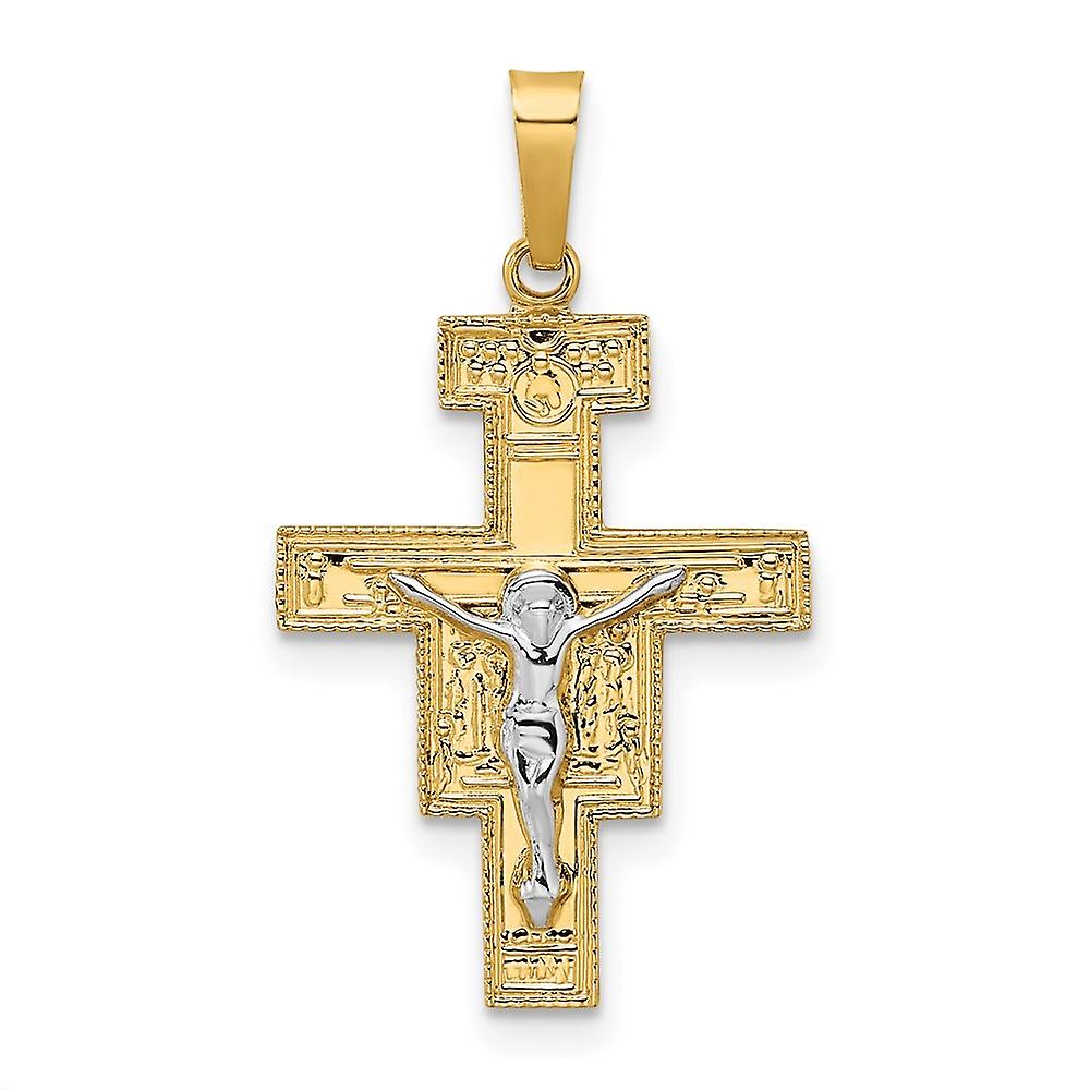 14k Two tone Gold Solid Crucifix Pendant Necklace 28x16mm Wide 2mm Thick-Pendant for Women